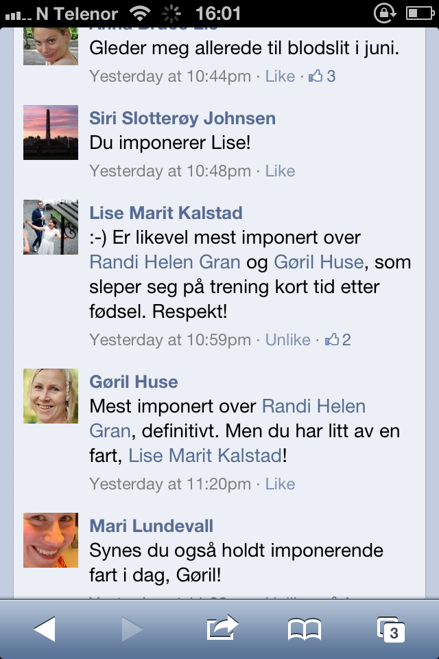 Treningsmessig denne uken fikk jeg løpt ca 6 km i Holmestrand og 6,6 km på Sognsvann (2 runder). Farten er ikke så veldig høy, men den kommer seg. Jeg får bare smøre meg med tålmodighet.. Som jeg egentlig ikke har!