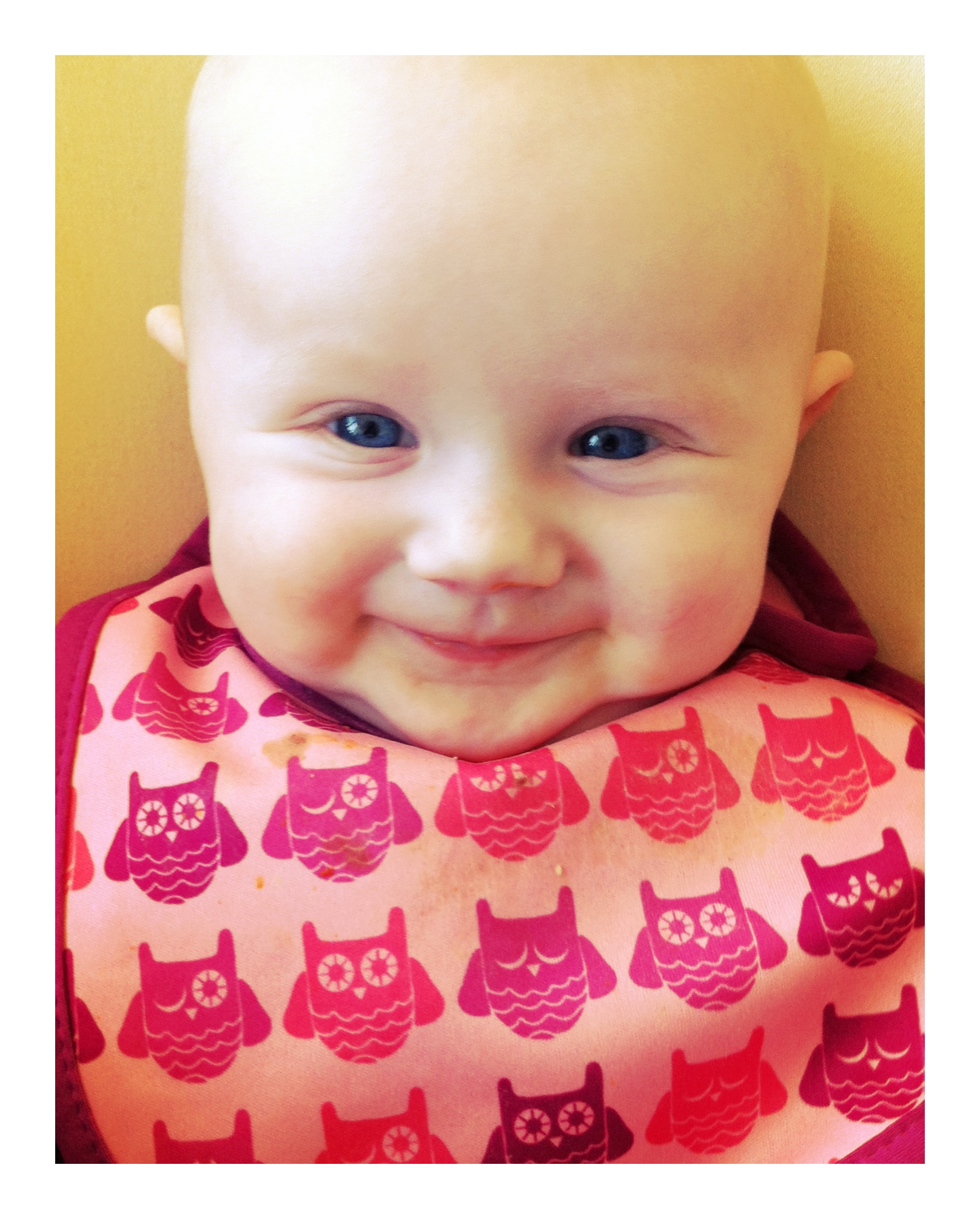 Maja fortsetter å spise grøt og hun får nå en halv porsjon på dagtid og ikke på kveldstid som hun gjorde i starten. Hun sover bedre nå, men hun har ikke trivdes i den nye sengen sin. Akkurat nå ligger hun mellom oss og storkoser seg spesielt om morgenen når hun våkner opp sammen med mamma og pappa. Hun smiler fra øre til øre 🙂