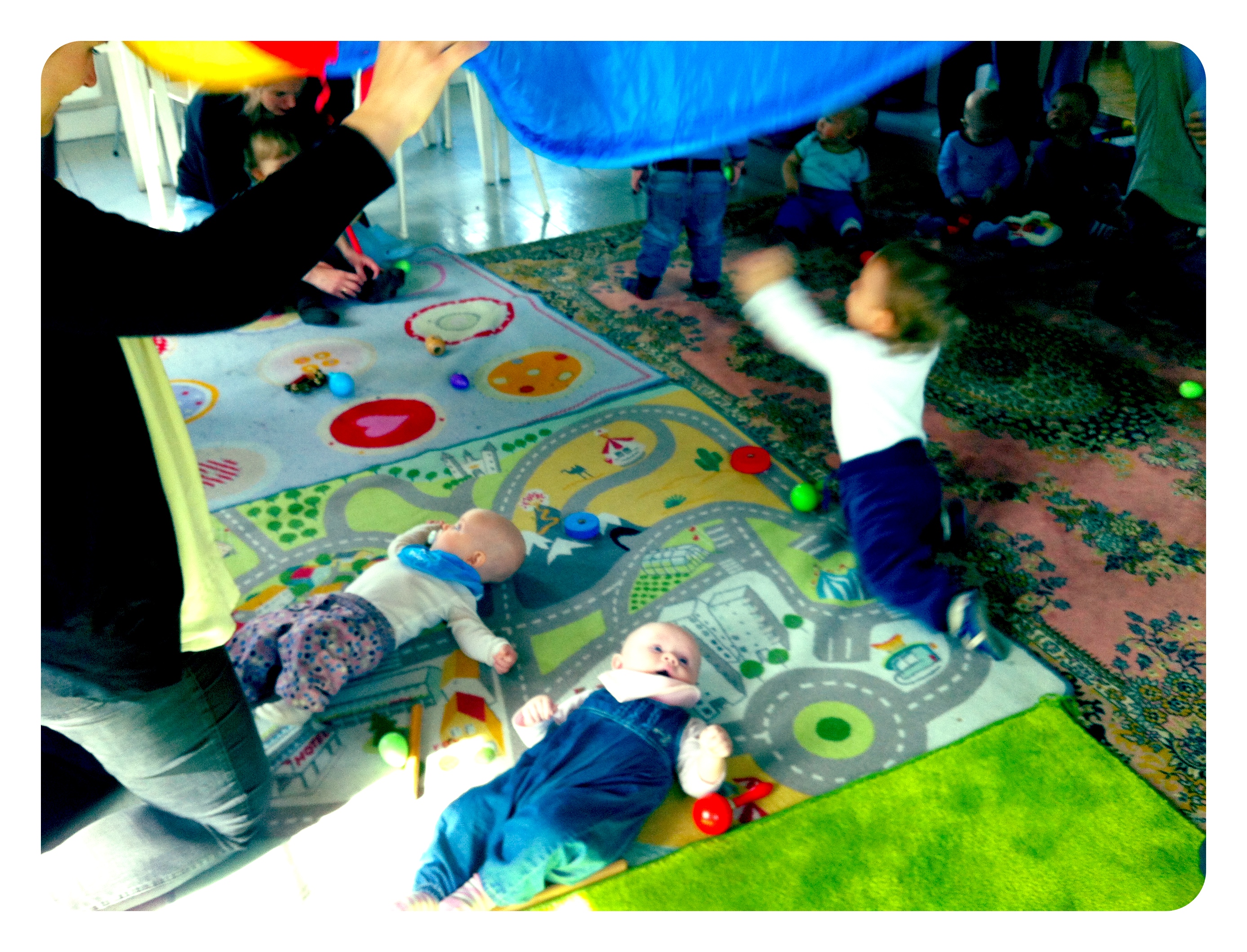 Maja synes det var veldig morsomt med babysang. Både hun og Tuva koste seg sammen med de andre bebisene. Vi måtte fnise litt når det var kaffe, te, frukt og kjeks etter sangen. Følte oss plutselig veldig voksne. Vi var redde for at det ville bli litt vel gladkristent, men det gikk veldig fint 🙂